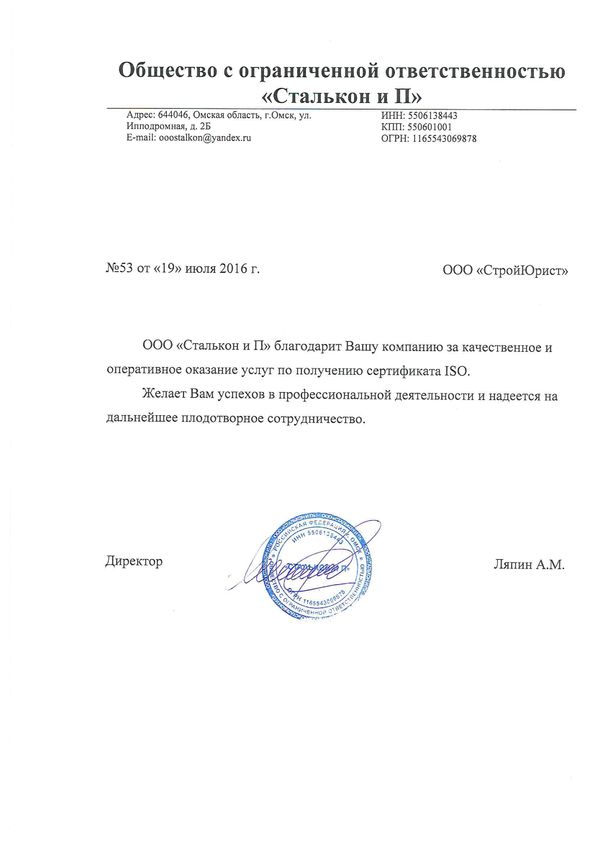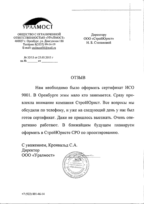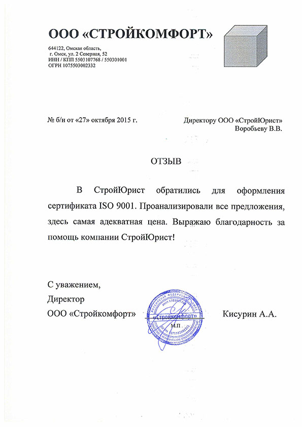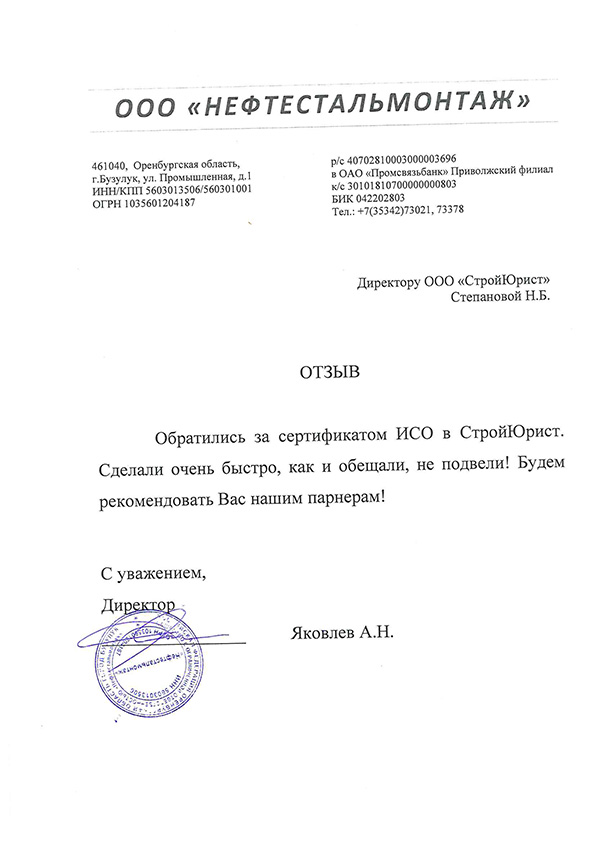 Отзывы клиентов "СтройЮрист" по ISO в Ялте