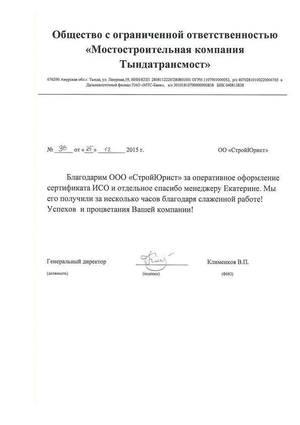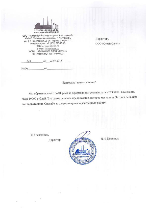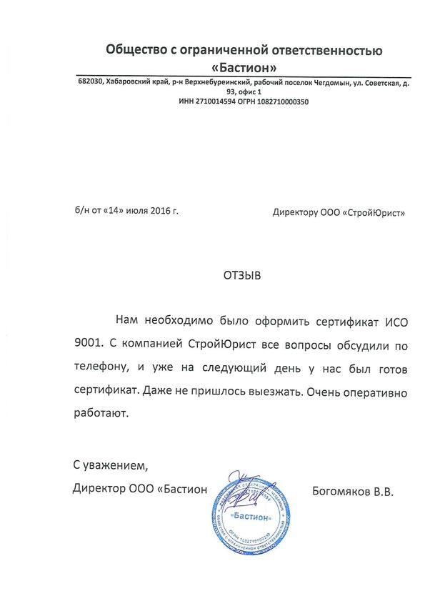 Отзывы клиентов "СтройЮрист" по ISO в Ялте