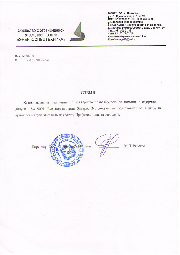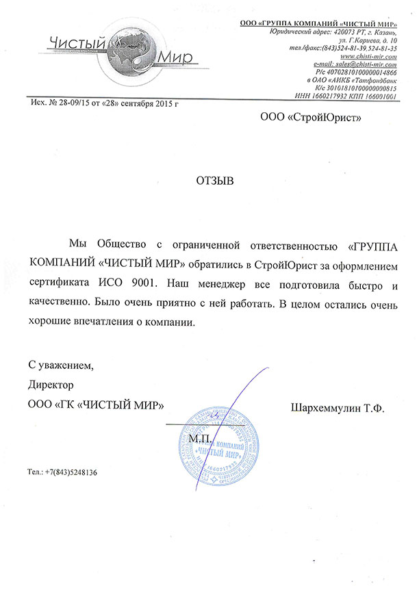 Отзывы клиентов "СтройЮрист" по ISO в Ялте