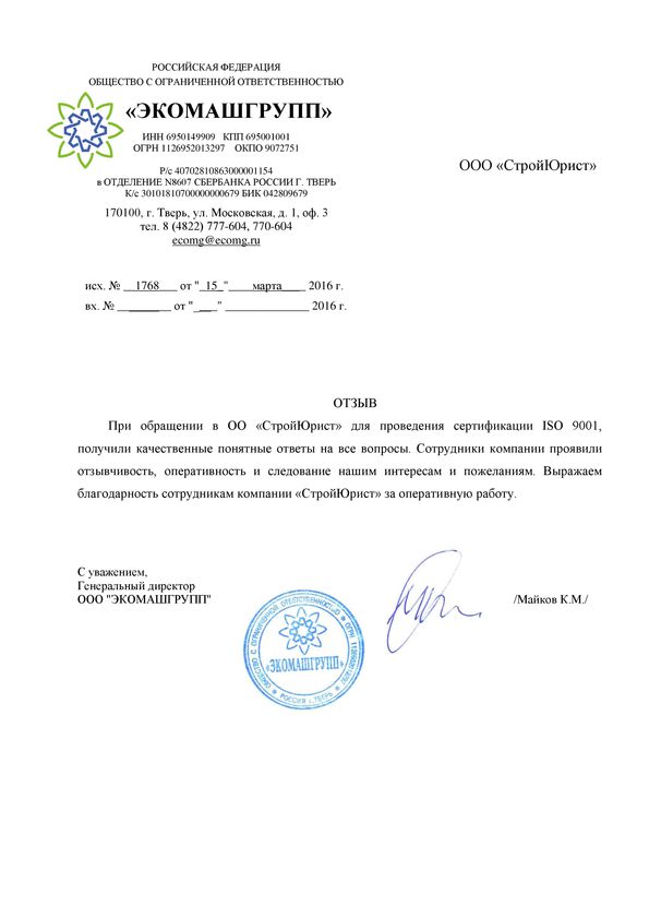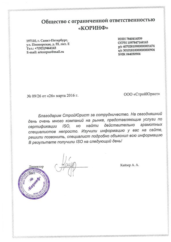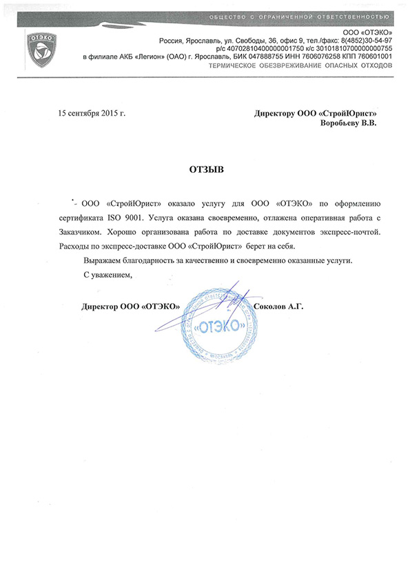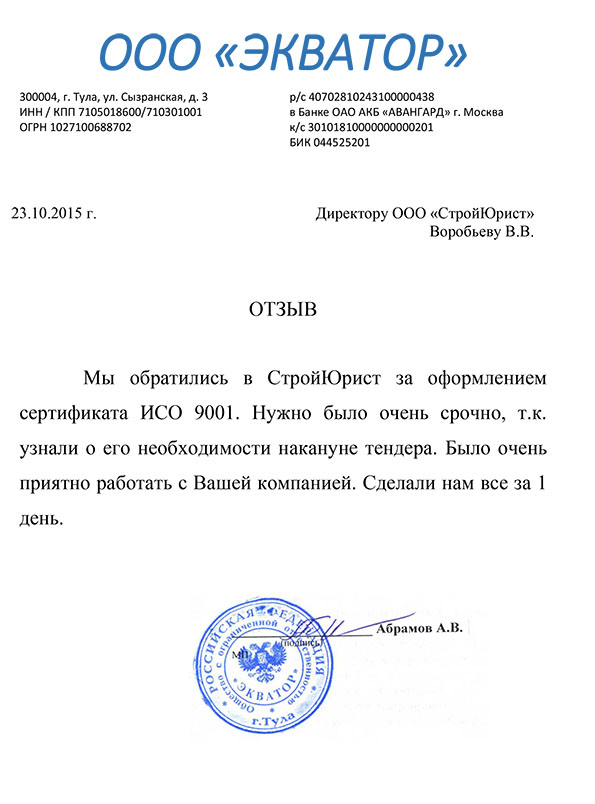 Отзывы клиентов "СтройЮрист" по ISO в Ялте