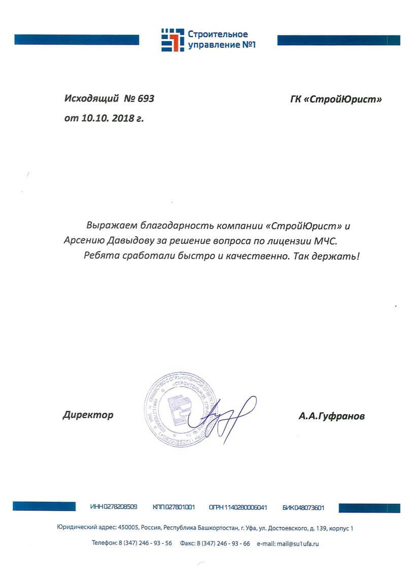 Отзывы клиентов "СтройЮрист" по лицензированию МЧС в Ялте