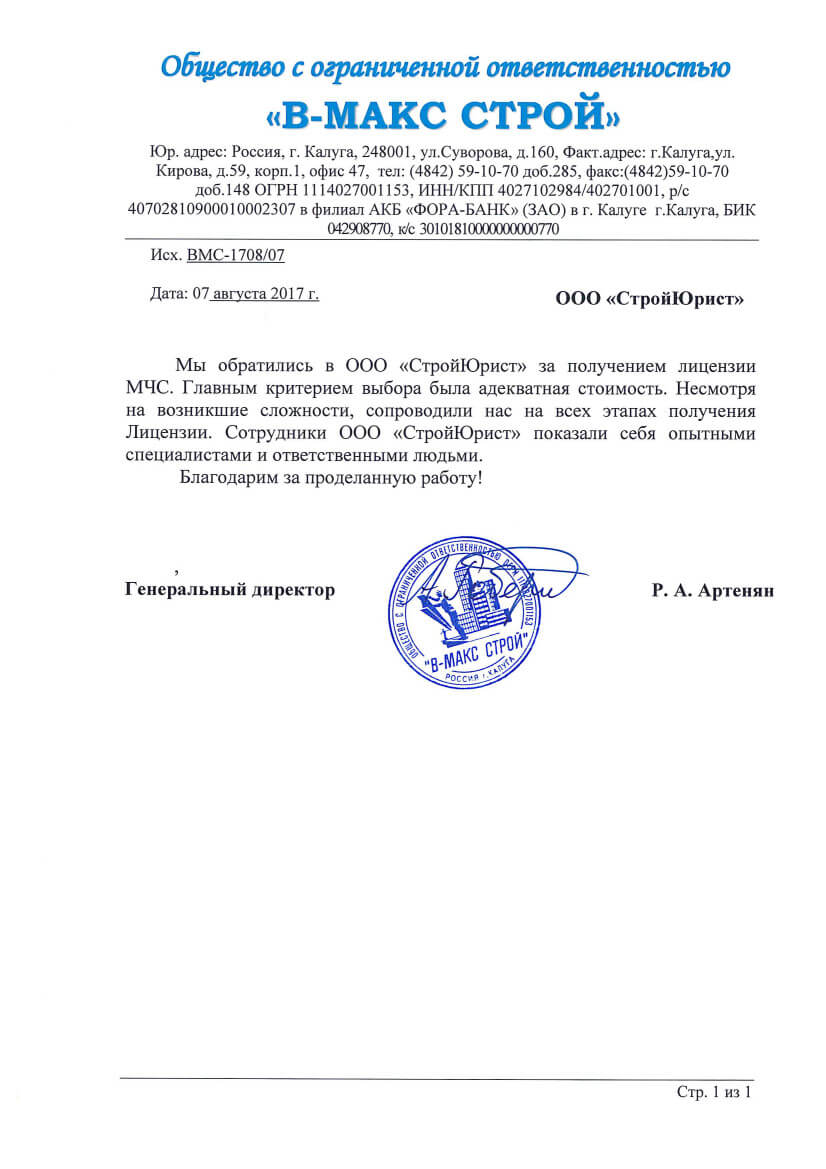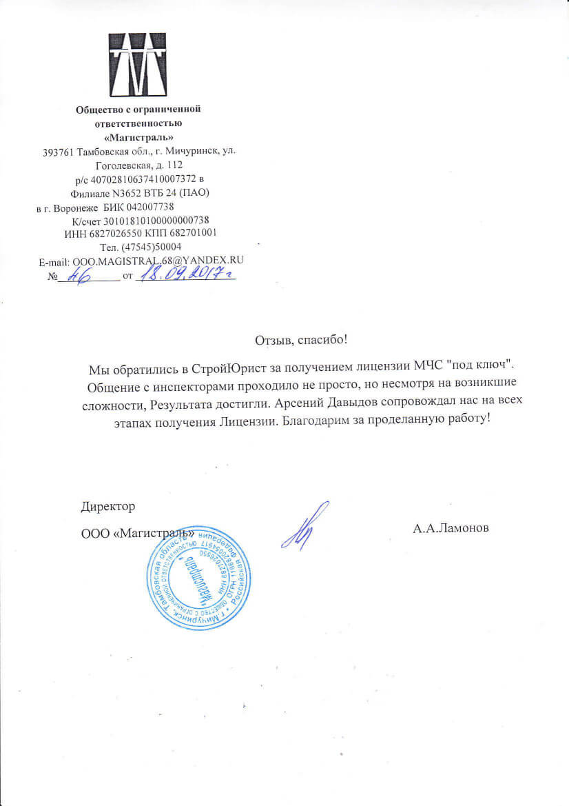 Отзывы клиентов "СтройЮрист" по лицензированию МЧС в Ялте