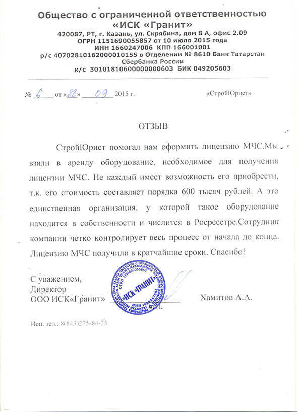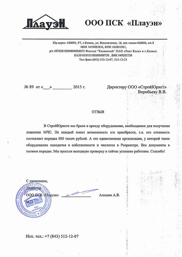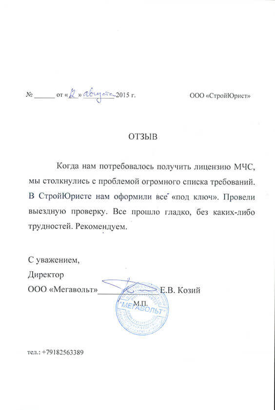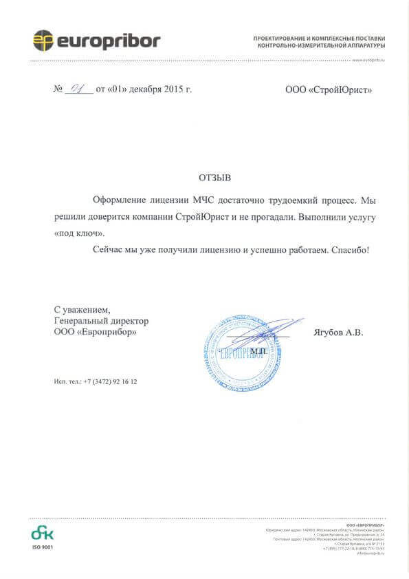 Отзывы клиентов "СтройЮрист" по лицензированию МЧС в Ялте