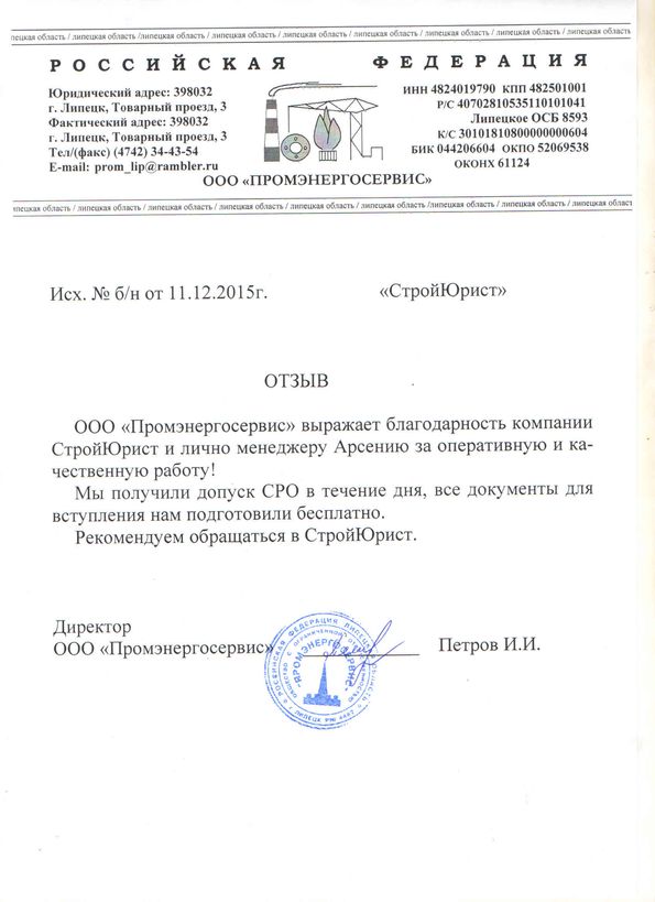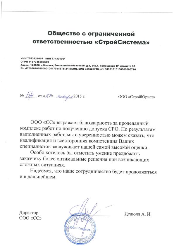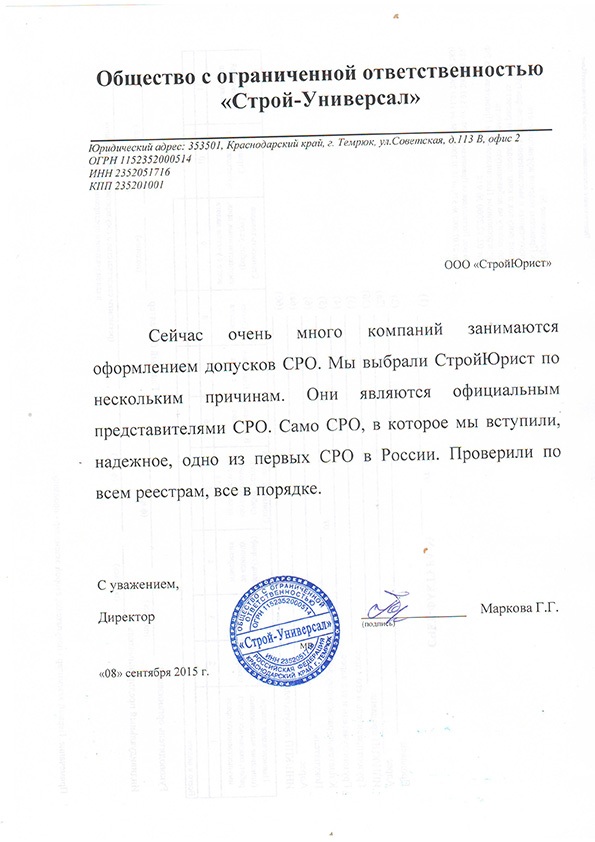 Отзывы клиентов "СтройЮрист" по вступлению в СРО в Ялте