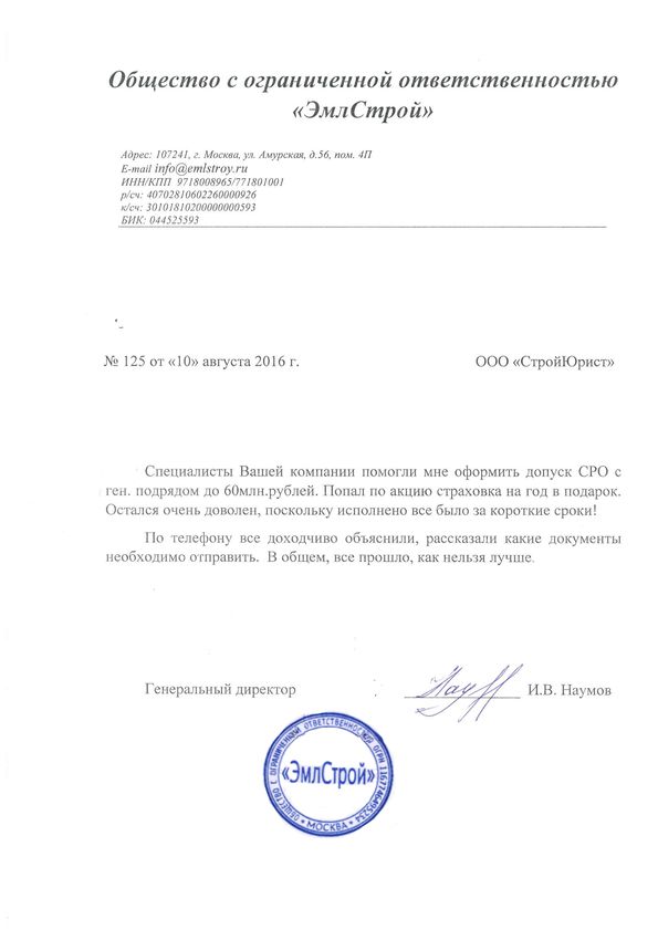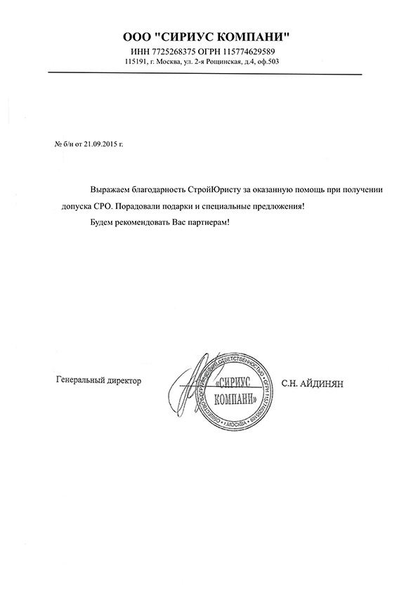 Отзывы клиентов "СтройЮрист" по вступлению в СРО в Ялте