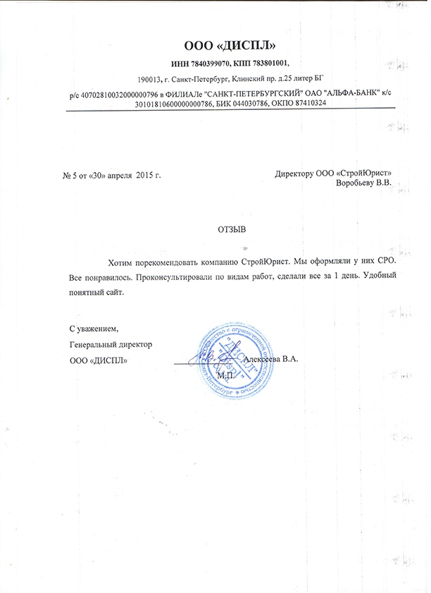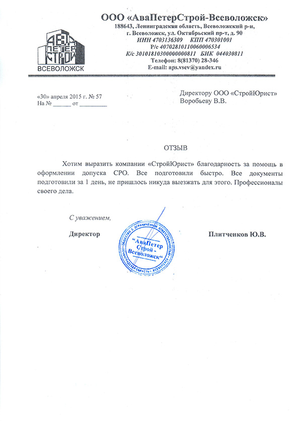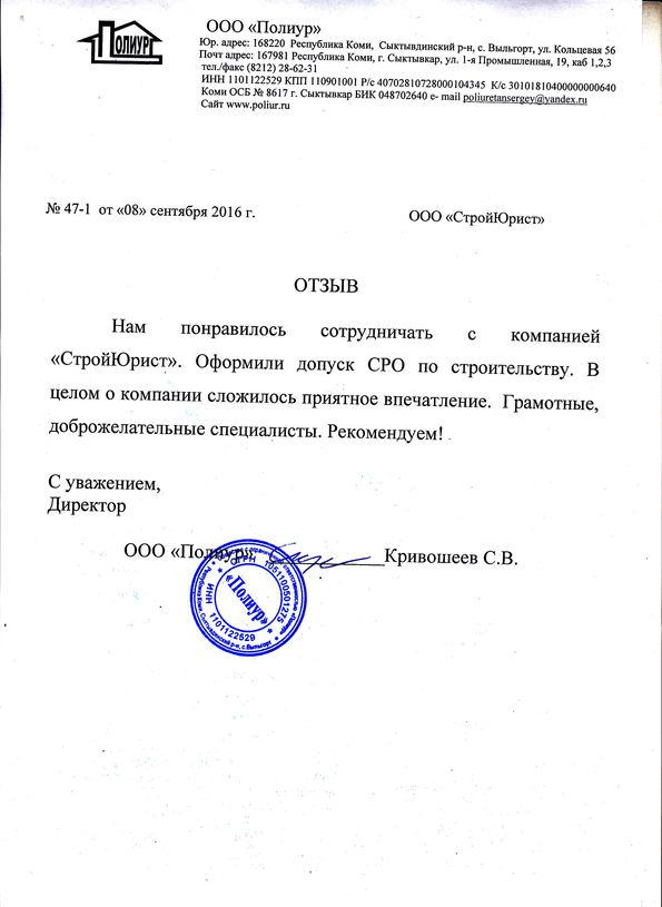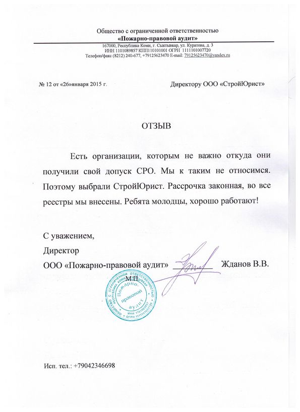Отзывы клиентов "СтройЮрист" по вступлению в СРО в Ялте