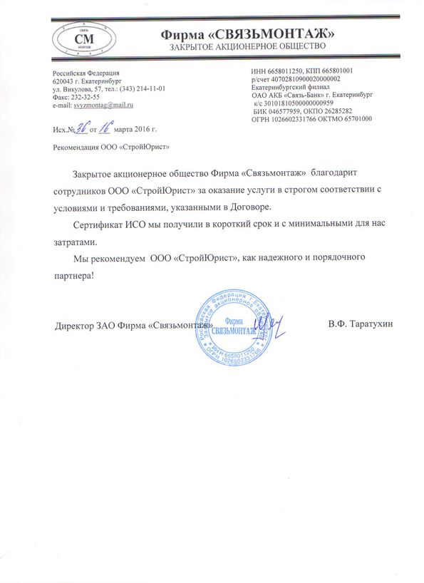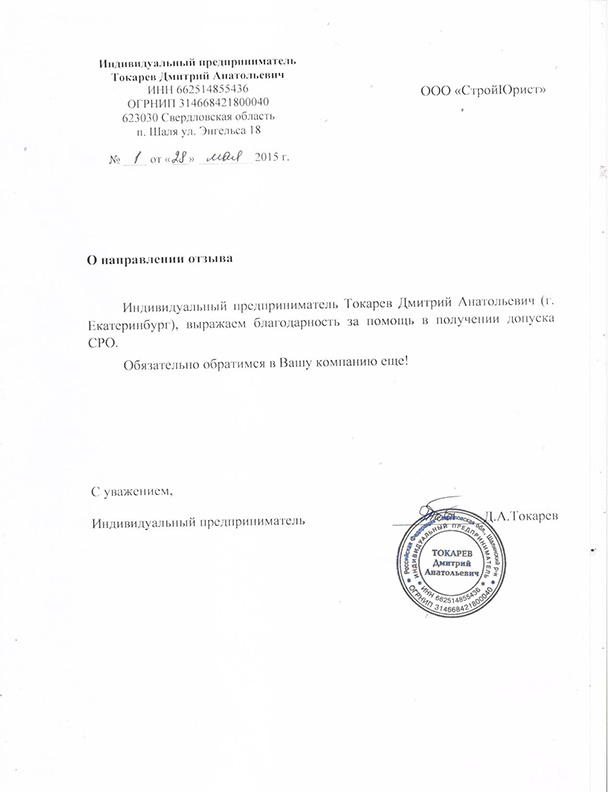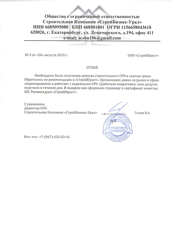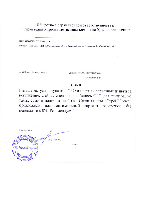 Отзывы клиентов "СтройЮрист" по вступлению в СРО в Ялте