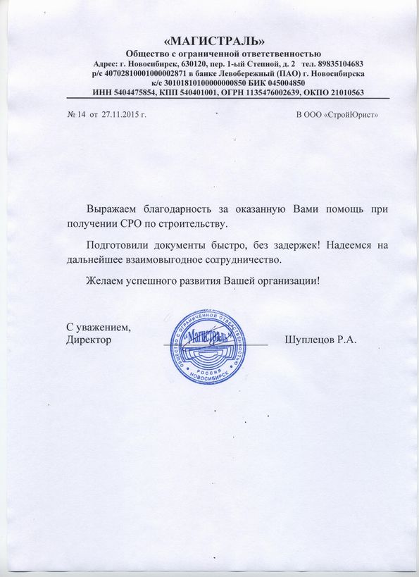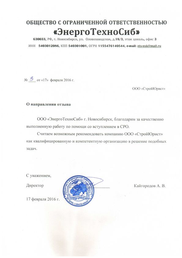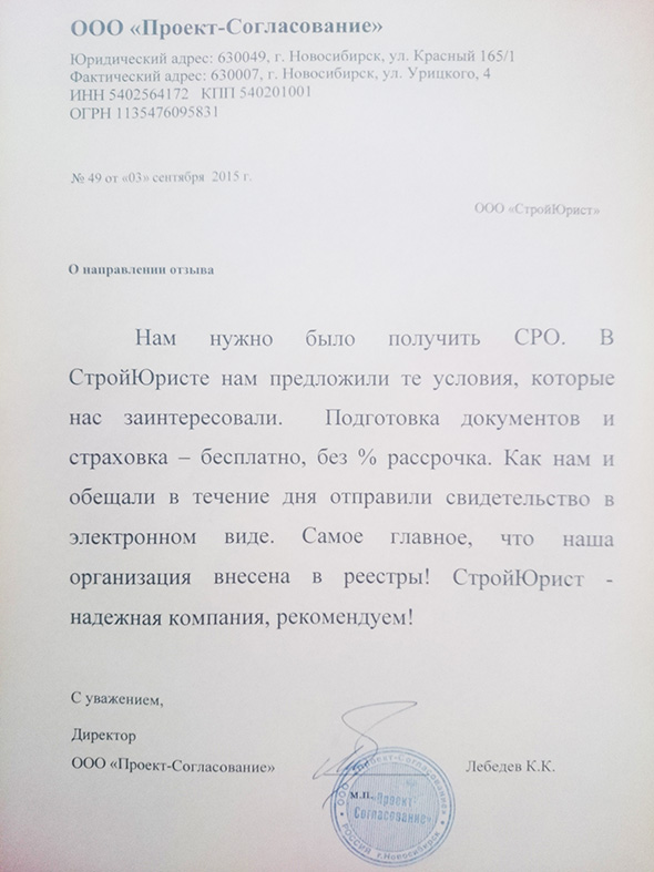 Отзывы клиентов "СтройЮрист" по вступлению в СРО в Ялте