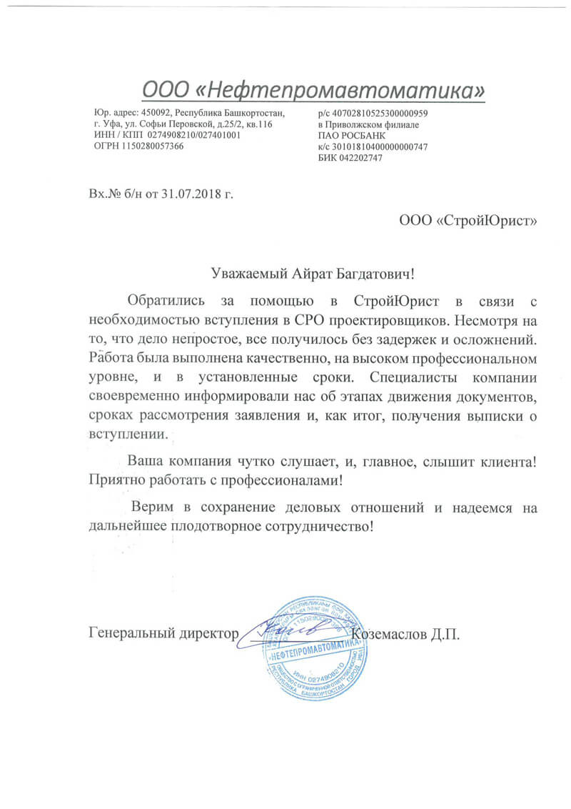 Отзывы клиентов "СтройЮрист" по вступлению в СРО в Ялте