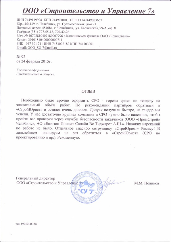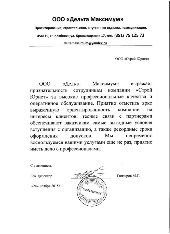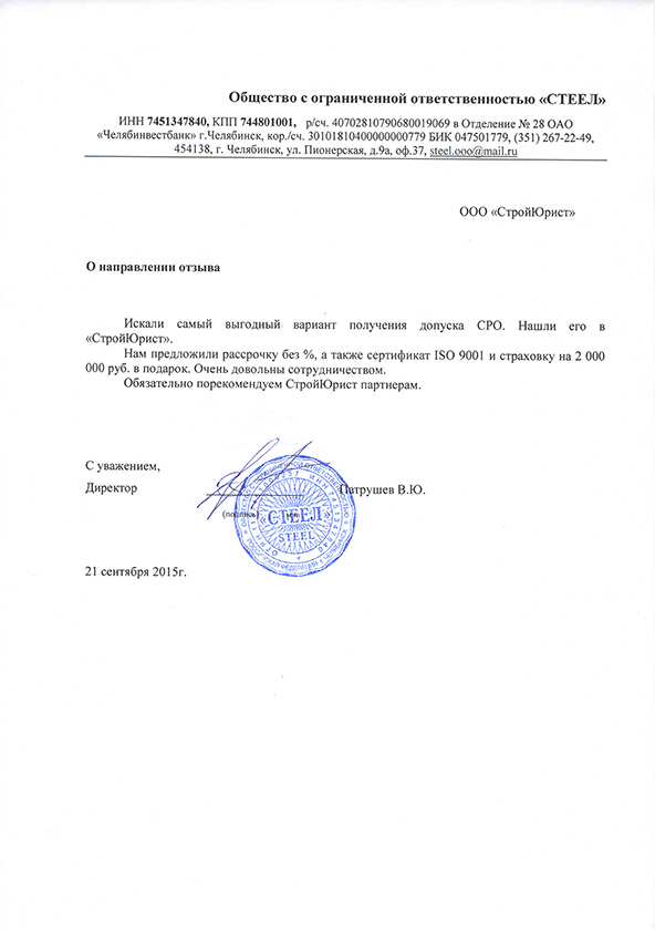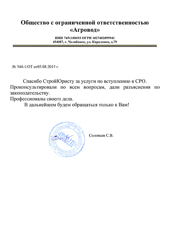 Отзывы клиентов "СтройЮрист" по вступлению в СРО в Ялте
