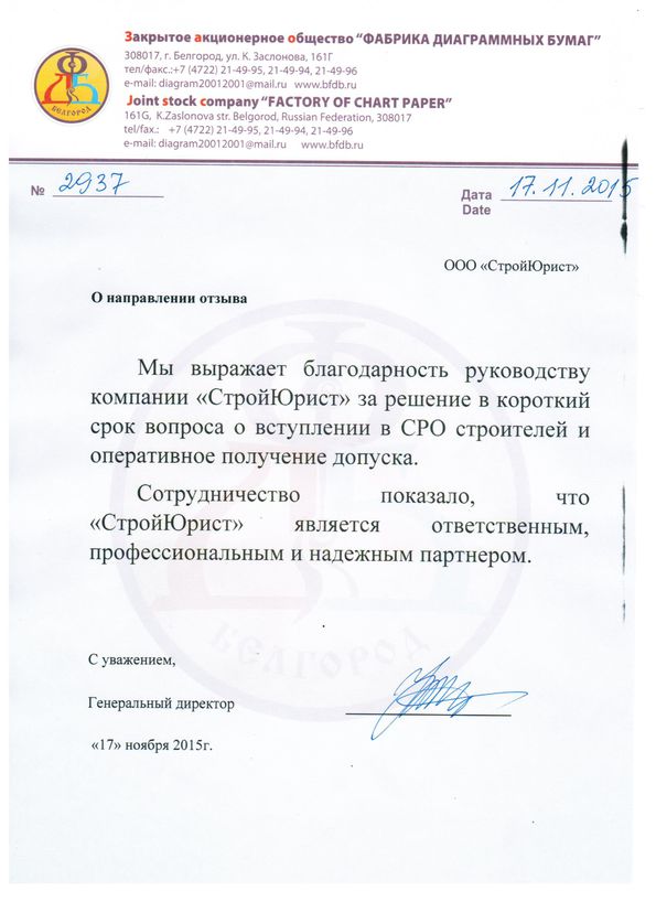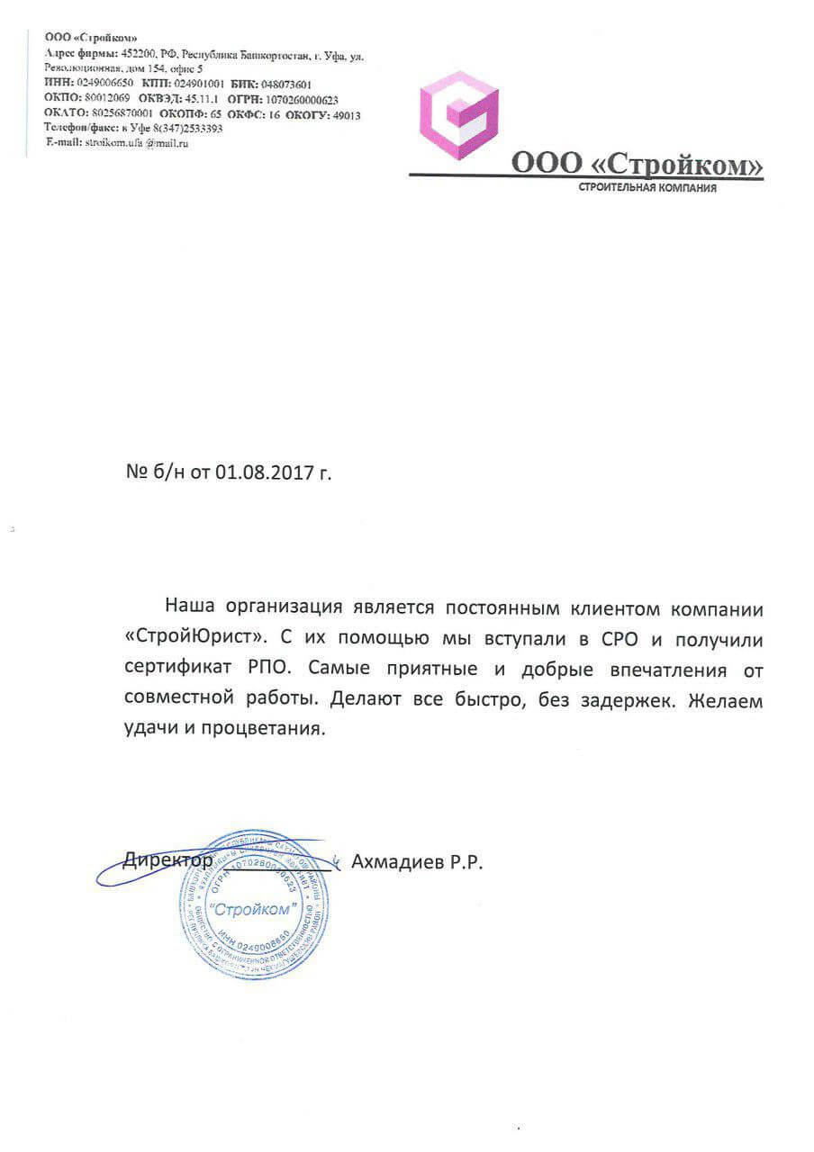 Отзывы клиентов "СтройЮрист" по вступлению в СРО в Ялте