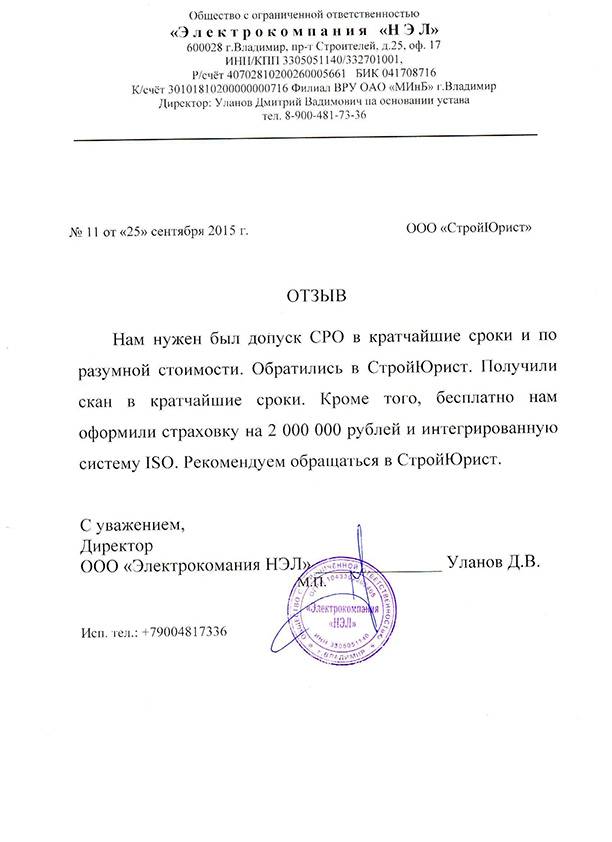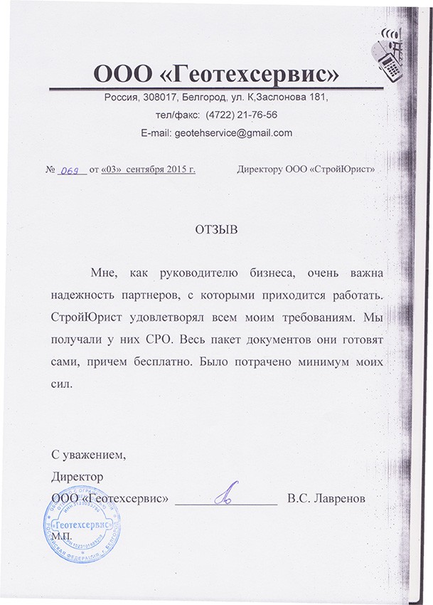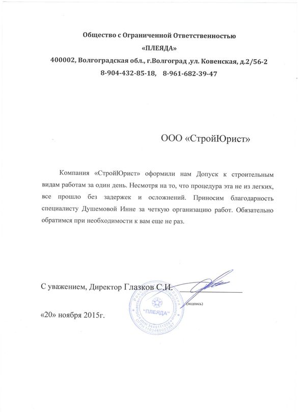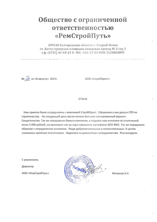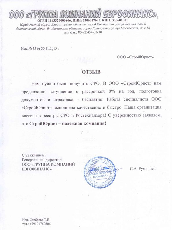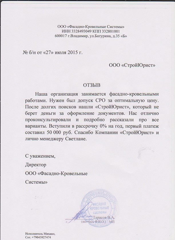 Отзывы клиентов "СтройЮрист" по вступлению в СРО в Ялте